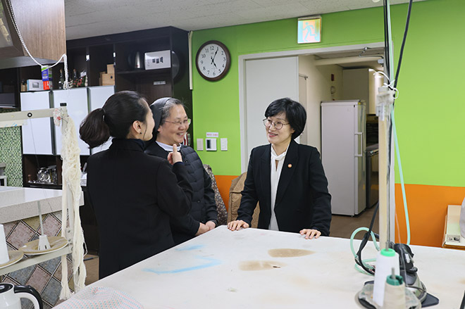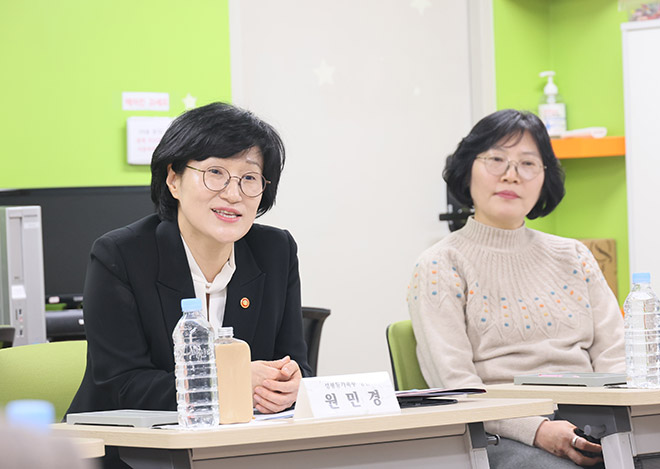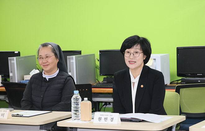 원민경 성평등가족부 장관은 9일(월) 오후 서울 금천구에 위치한 서울이주여성디딤터를 방문해 운영 현황과 현장 의견을 청취하고 있다.