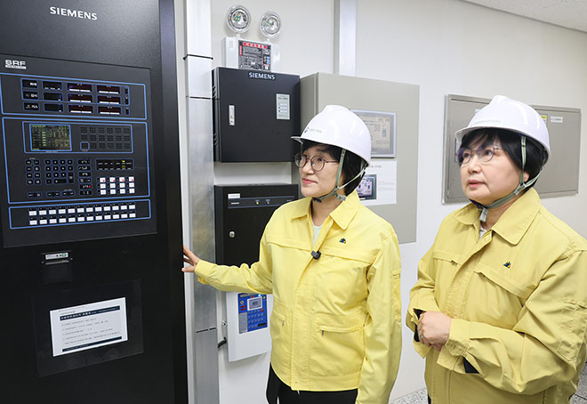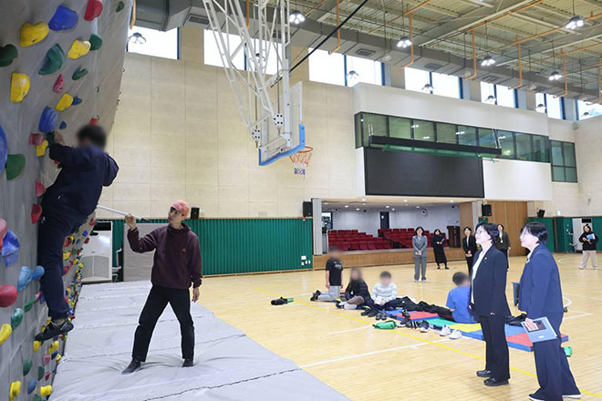 원민경 성평등가족부 장관이 10일(화) 오후 경기도 용인시에 위치한 국립중앙청소년디딤센터를 방문해 시설을 둘러보며 안전점검을 하고 있다.